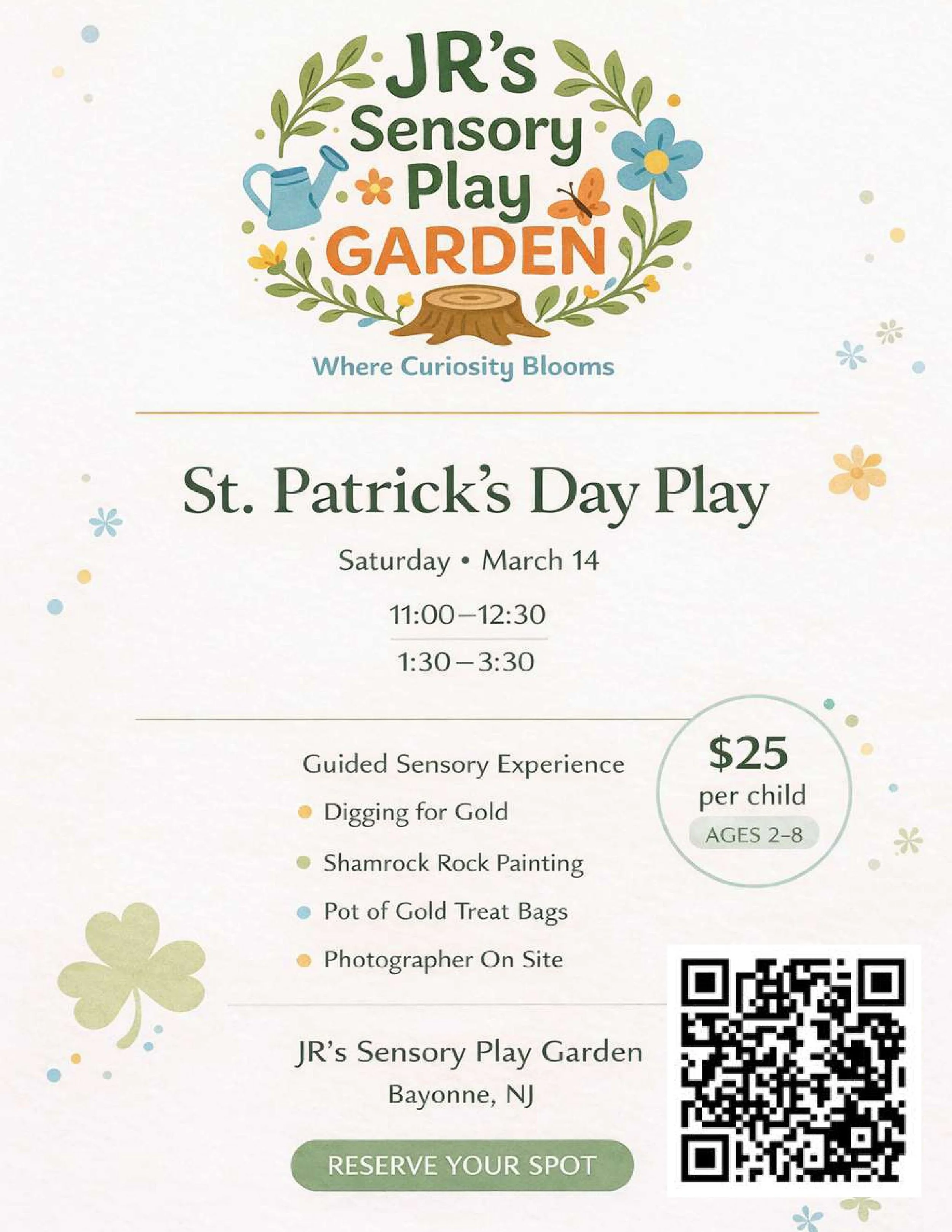 At JR’s Sensory Play Garden, our sensory play workshops are designed for children ages 2–8 to explore freely, build confidence, and strengthen social-emotional skills through child-led, nature-inspired activities. Each session includes hands-on sensory materials, nature elements, movement invitations, fine-motor stations, process art, and opportunities for self-expression and regulation.